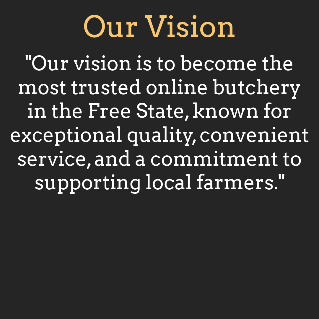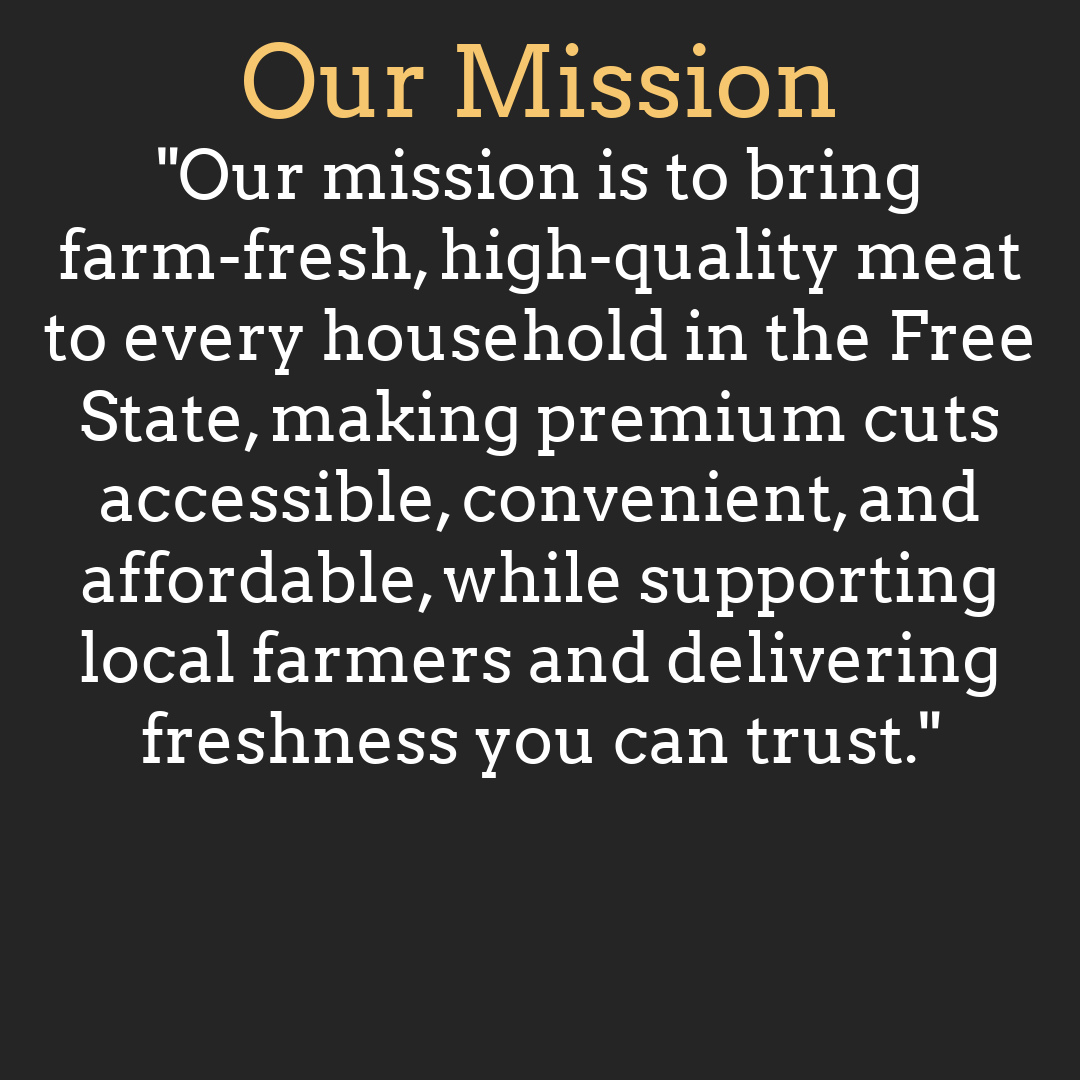 We're an online butchery sourcing all our meats from local and trusted Free State farmers to deliver farm-fresh and premium cuts to your doorstep...